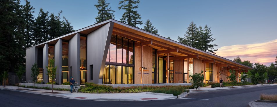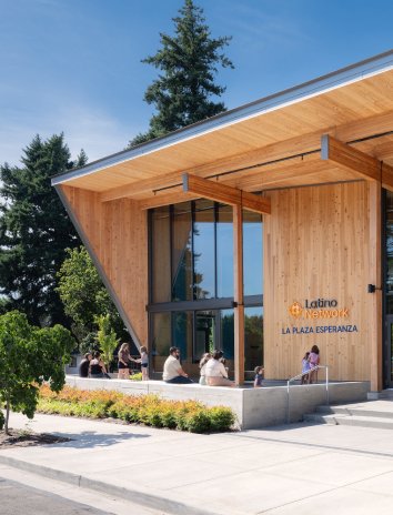 La Plaza Esperanza, meaning “a place of hope,” is a transformative 18,000 SF community center in Gresham, Oregon, developed by Latino Network. Designed as a cultural and service hub, the center unites 59 essential programs under one roof, serving the nearly 50,000 Latino/x residents living within five miles across East Multnomah County. The facility includes a culturally specific early learning center, youth programs, and flexible spaces for celebrations, community events, and intergenerational gatherings. On-site services ranging from housing assistance to mental health support are offered in a welcoming environment.