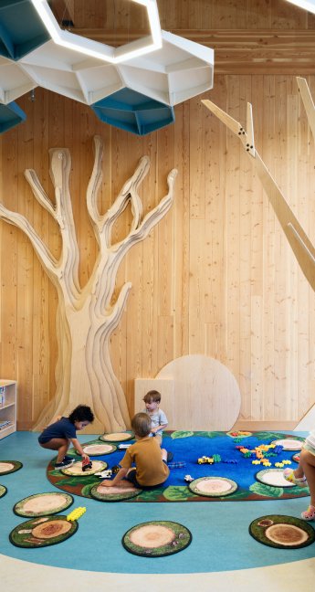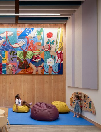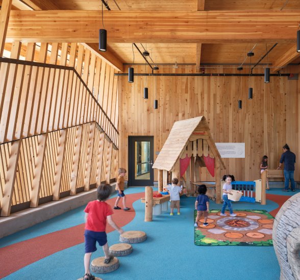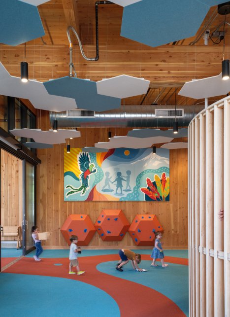 Constructed with mass timber, the building reflects the natural beauty of the Pacific Northwest, while warm, light-filled interiors foster connection and comfort. Key features include a central reception area, community lounge, multipurpose gathering rooms, and classrooms with indoor-outdoor play areas that support innovative, culturally responsive early education. The layout encourages visibility and engagement, opening directly to a large public plaza that welcomes all generations. Designed with community input, the interior spaces cultivate belonging, pride, and unity. La Plaza Esperanza stands as a symbol of resilience and the power of community-led vision to create lasting opportunity for generations to come.