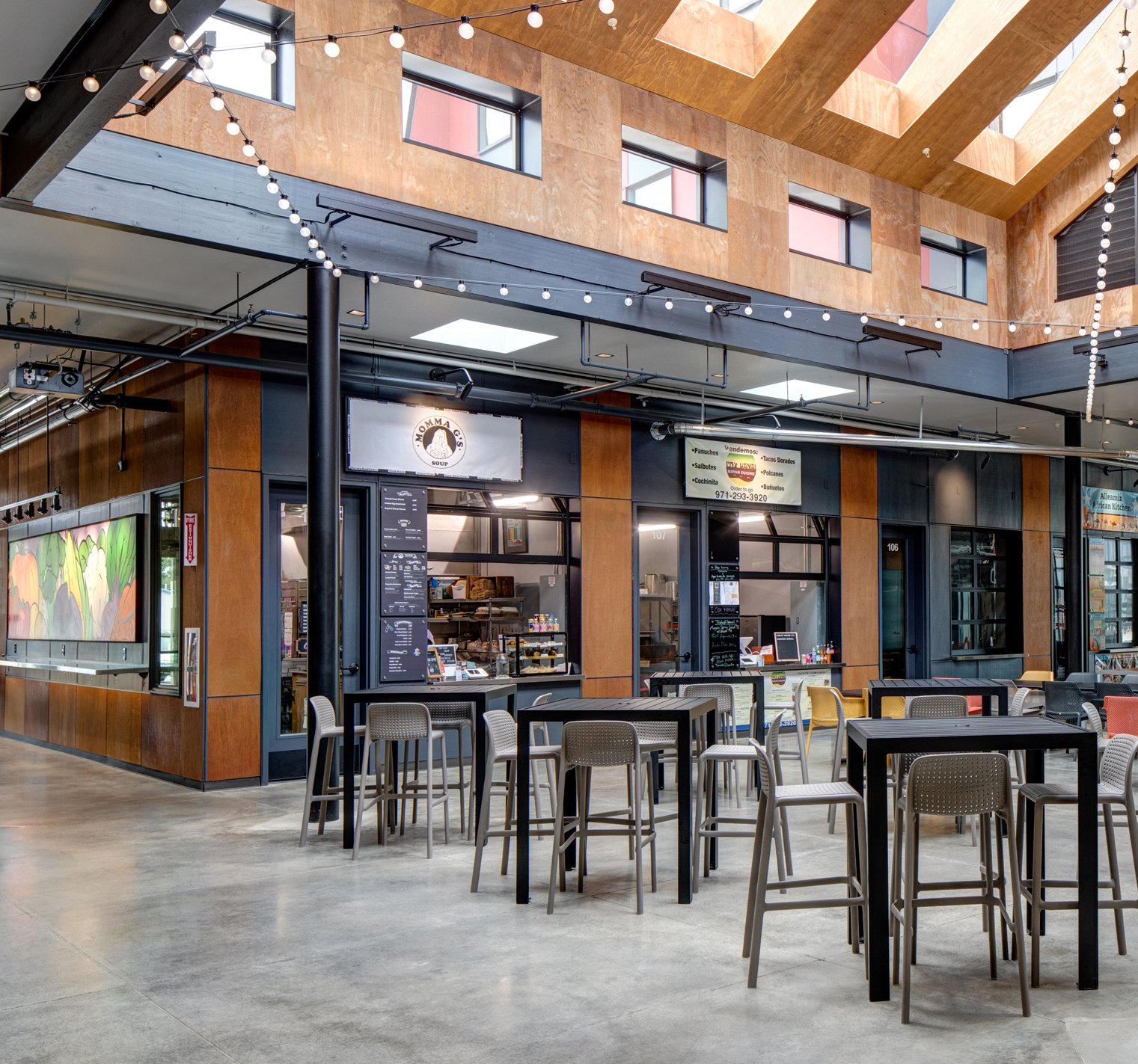 Comprised of 3-stories and nearly 40,000 SF, The Rockwood Market Hall is the heart of downtown Rockwood, a diverse and growing community in East Portland. Twelve micro-restaurants, four micro-retail spaces, multiple commercial kitchens, open-air breezeways, and a market hall for visitors and tenants alike to enjoy flavor profiles of great depth and treasures from around the world! All while gathering in a space inspired by connection- for all ages and with skills training opportunities for job-ready youth and adults in a community-centered environment built to empower.