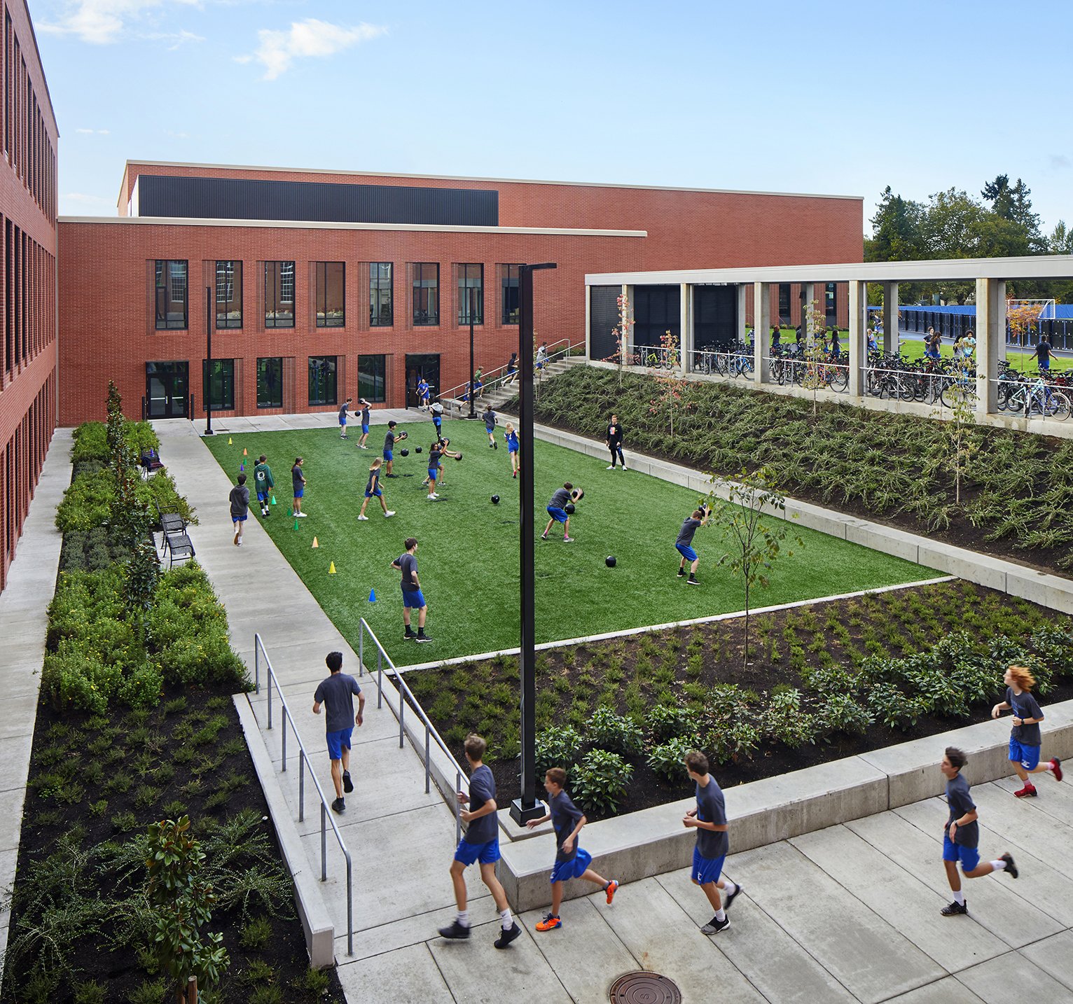Ulysses S. Grant High School, originally built in 1924, underwent a substantial modernization project for upgrades to 300,000 SF of the campus for the classrooms, library, and common areas to be state-of-the-art, sustainable, and able to serve well beyond today’s generation. The renovation featured several key parts from major seismic and facade renovations to a ground-up gymnasium addition. The original gymnasium was restored to serve as the center for art and a centralized resource center for PPS students. With a new solar array, roofing, turf, and natural fields, the nearly 1,500 Grant Generals were proud to reclaim their newly finished school before the 2019 school year.