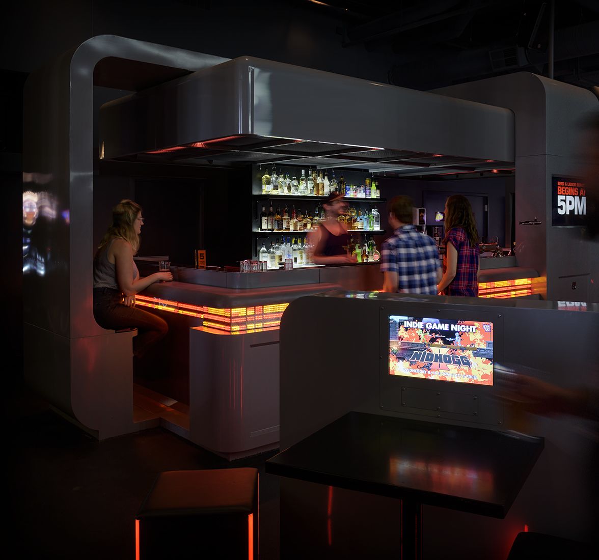 Ground Kontrol is an iconic bar and arcade in Portland’s Old Town/ Chinatown. The renovation expanded the footprint by the adjacent tenant suite that was added with a new connecting passageway through a load-bearing masonry wall. The existing URM building provided some challenges when adding new full-height interior pocket doors, a completely custom bar with built-in seating, and a new HVAC system that was integrated into the design. This tenant improvement project was completed under the facilities permit in an occupied building.
