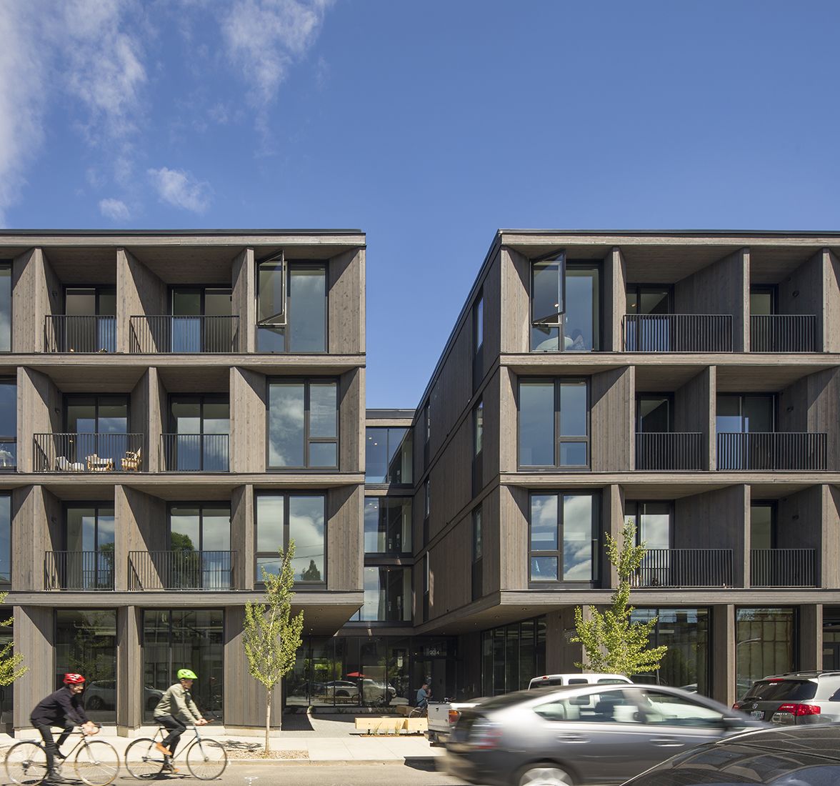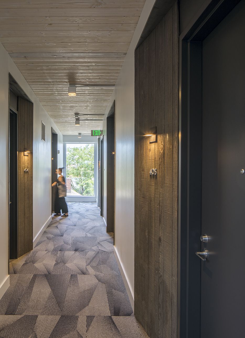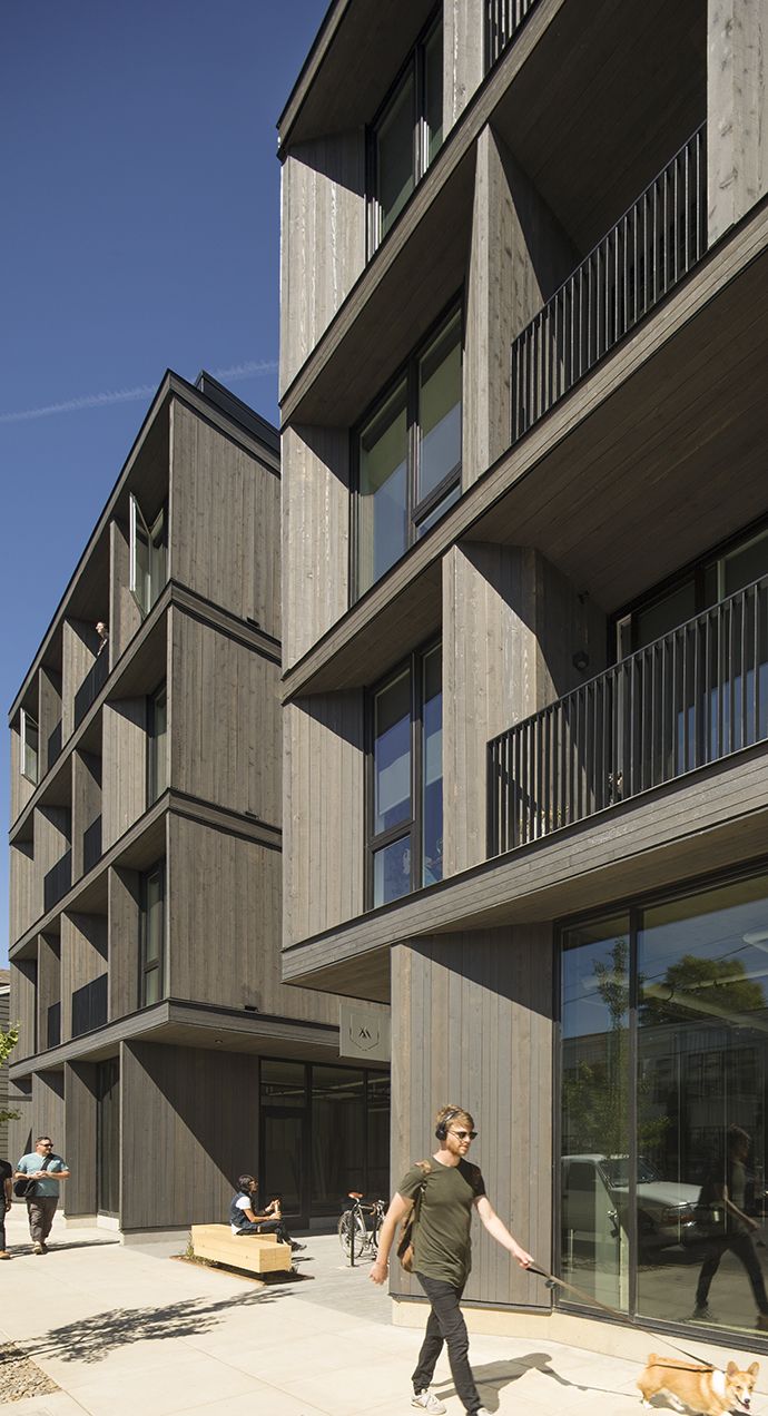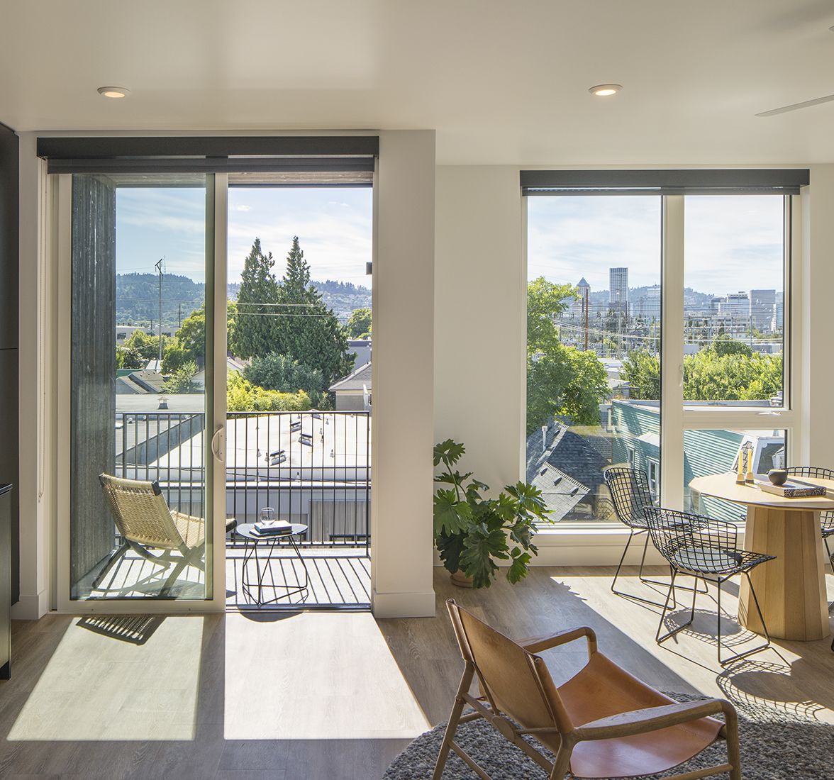 Abernethy Flats is a four-story project that consists of 34 high-end studio and 1-bedroom units located on the Central Eastside in the Hosford-Abernethy neighborhood. Mixed-use commercial retail space is located on the street level near the courtyard that extends from the main entrance into the sidewalk encouraging neighborhood connectivity and engagement for residents and businesses in the area. Built with sustainability and energy efficiency, large glazed panels invite an expanse of natural light and access to open-air for an open feel providing tenants with bright and welcoming living spaces accompanied by magnificent views of the Portland cityscape.