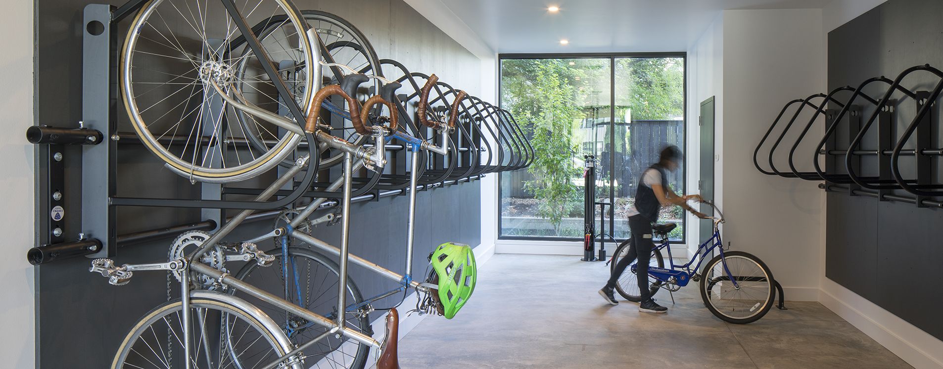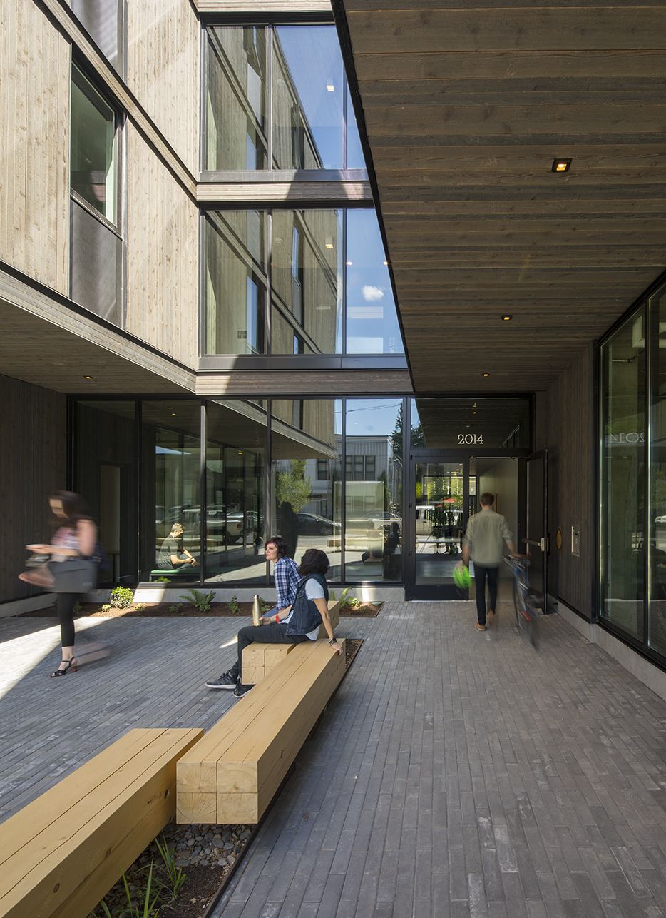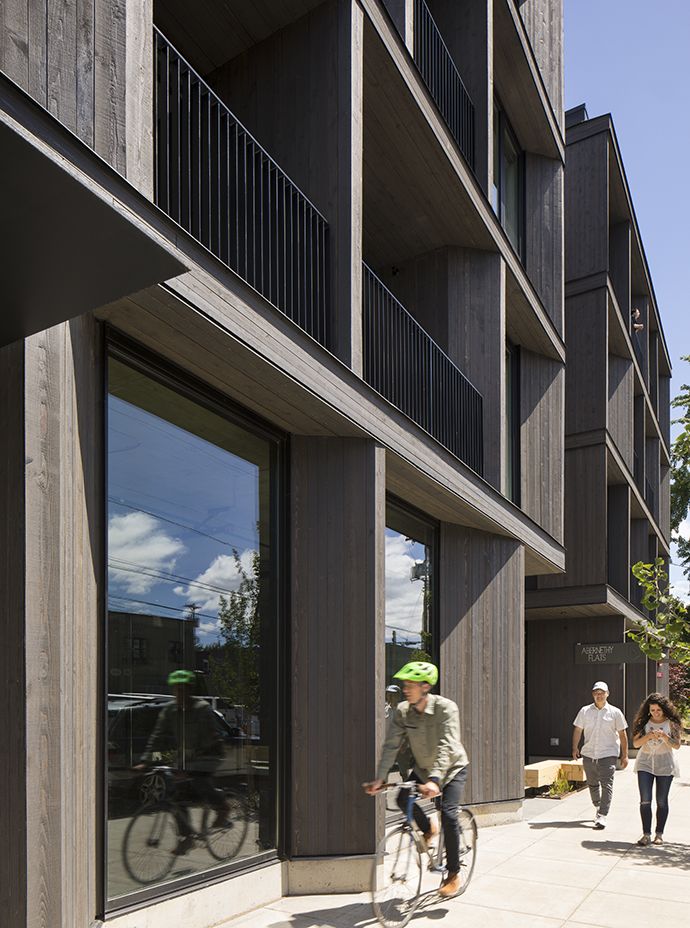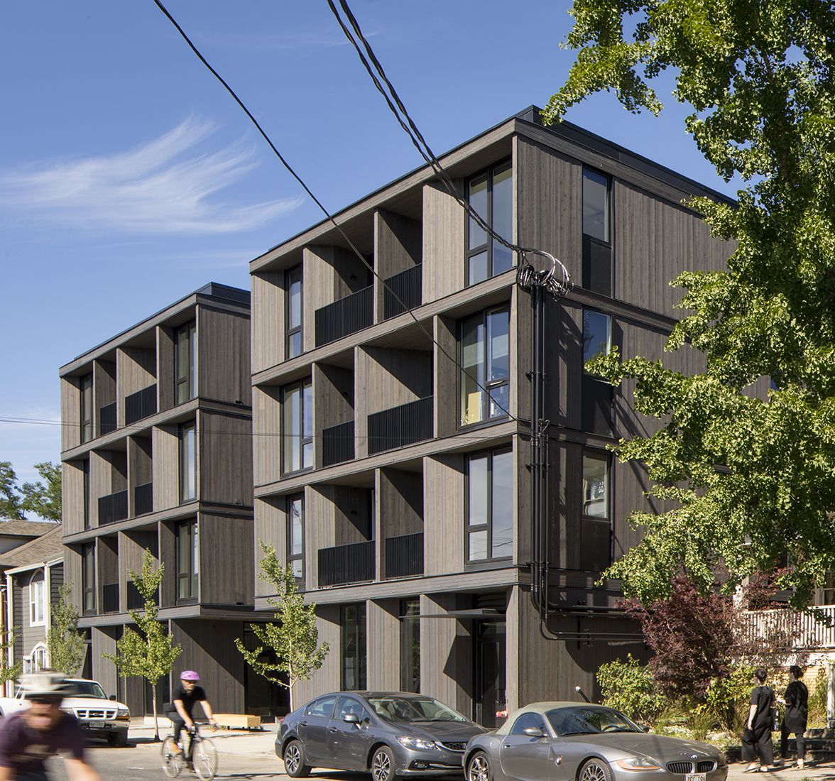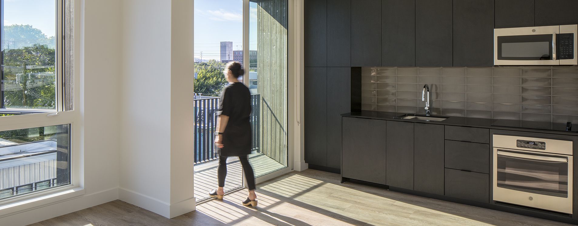 Abernethy Flats is a four-story project that consists of 34 high-end studio and 1-bedroom units located on the Central Eastside in the Hosford-Abernethy neighborhood. Mixed-use commercial retail space is located on the street level near the courtyard that extends from the main entrance into the sidewalk encouraging neighborhood connectivity and engagement for residents and businesses in the area. Built with sustainability and energy efficiency, large glazed panels invite an expanse of natural light and access to open-air for an open feel providing tenants with bright and welcoming living spaces accompanied by magnificent views of the Portland cityscape.