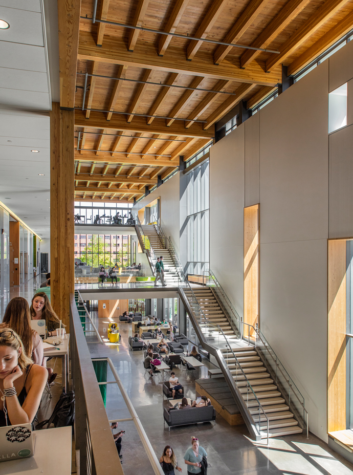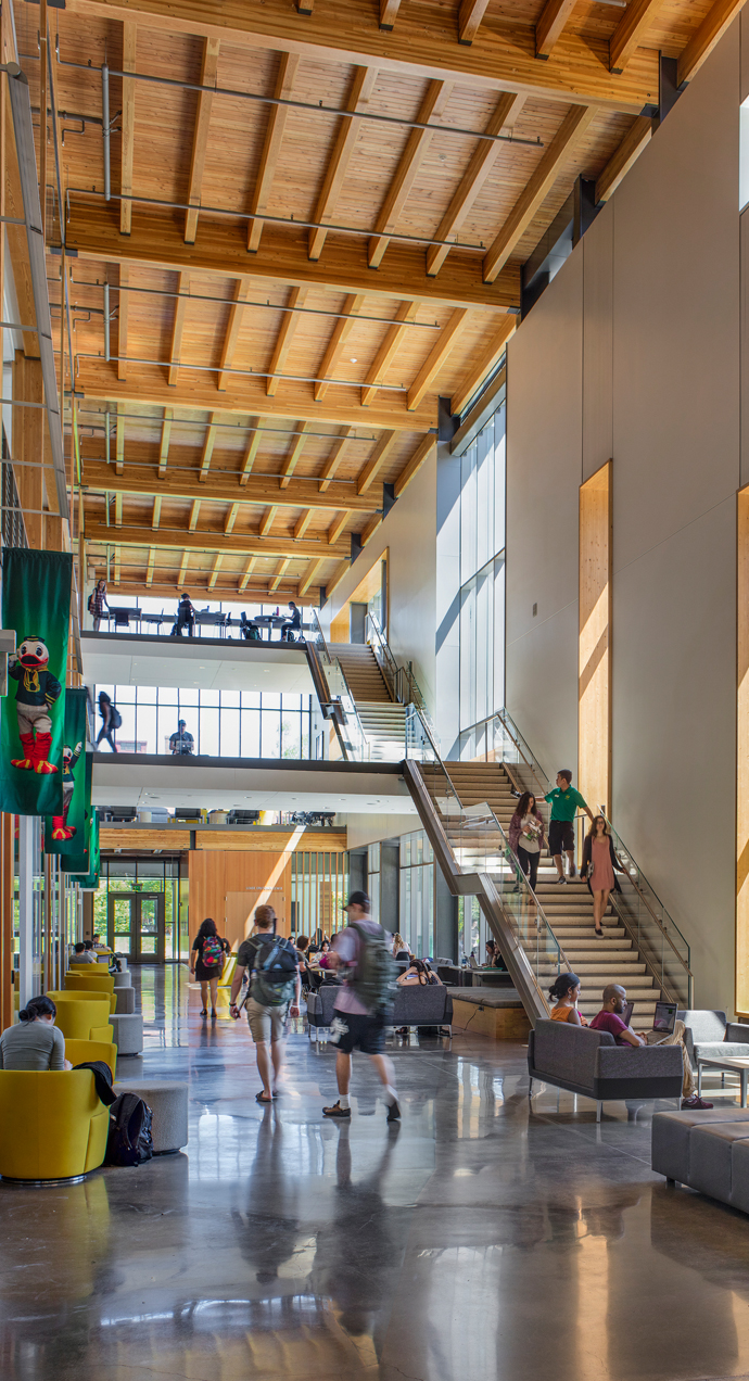 Colas Construction in partnership with Lease Crutcher Lewis, completed thisĀ $90M addition and renovation to the Erb Memorial Union (EMU) for the University of Oregon. The project features a new kitchen, dining facilities, student lounge, study areas, offices, meeting and conference rooms, ballroom spaces, public circulation areas, and a musical concert hall.